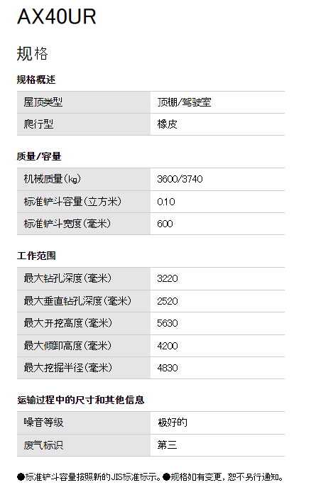 AIRMAN 小型挖掘机AX40UR系列